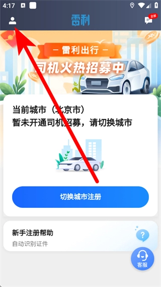 打开雷利出行司机端,点击页面左上角的个人图标。