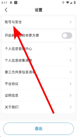 在设置页面中,点击“账号与安全”选项,即可进入对应的账号与安全页面。