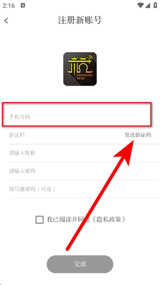 输入验证码,设置密码,勾选协议后,点击完成按钮,即可完成账号注册流程。