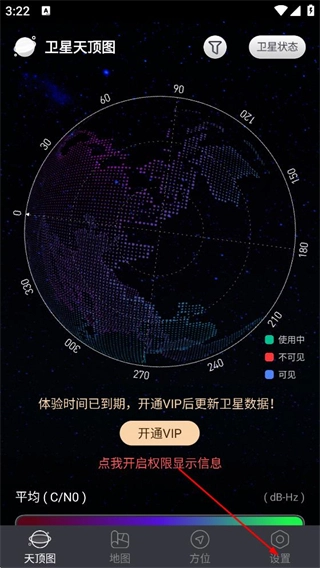 在卫星天顶图页面,点击底部的设置选项,即可进入设置页面。