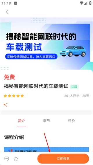 在课程详情页面,点击“立即报名”按钮,即可完成这门免费课程的报名流程。