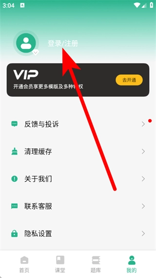 在个人中心页面,点击登录注册区域,进入登录页面。