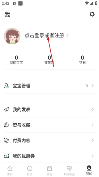 在孕育提醒的首页,点击底部导航栏中的“我的”选项,就能进入个人中心页面。