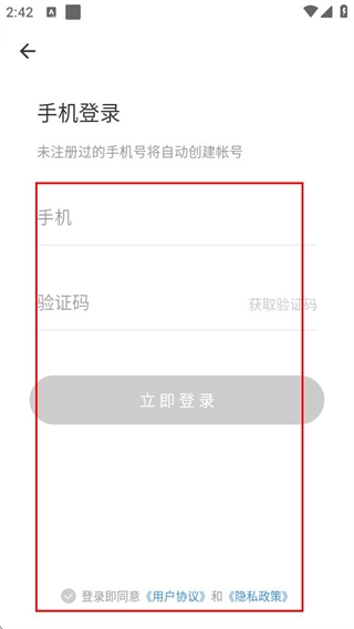 在手机登录界面,填写相关信息并勾选协议后,点击“立即登录”按钮就能完成登录操作。