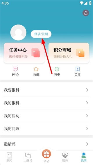 在个人中心页面,点击登录注册按钮,就能进入登录页面。