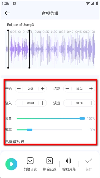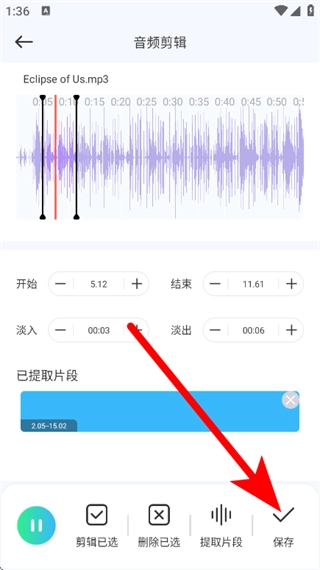 在确认好剪辑效果后,点击页面底部的保存按钮,即可完成音频剪辑的全部操作。