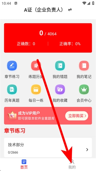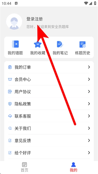 在安全员全题库首页,点击底部的“我的”选项,即可进入个人页面。