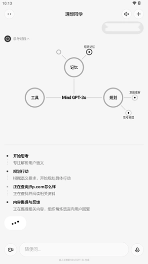 理想同学基于理想自研的行业首个车载认知大模型Mind GPT打造,模型迭代速度快,23年12月至今,大模型已经迭代30多次。即将上线的Mind GPT-3o是一个多模态端到端大模型,响应速度进入百毫秒级别,能够理解不同的模态,在一个模型内完成从感知到认知再到表达的完整的能力。理想同学的大脑升级为最新一代Mind GPT-3o之后,记忆、规划、工具、表达能力全面提升,也变得更加了解用户、认识用户并一直陪伴用户。