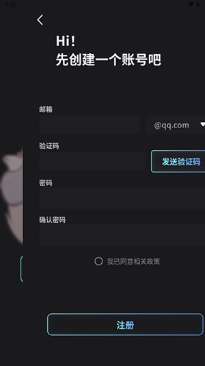 4、输入刚刚注册的账号完成注册;