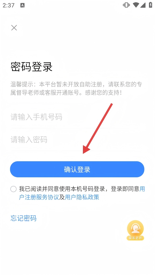 在密码登录页面填写手机号码和密码,登录成功后就能查看课程详情了。
