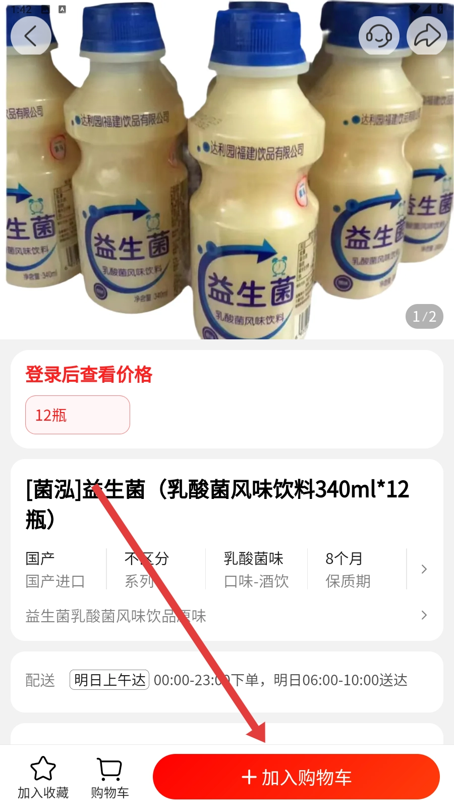 进入商品详情页面,核实相关信息无误后,点击【加入购物车】按钮,即可进行下单与支付操作。