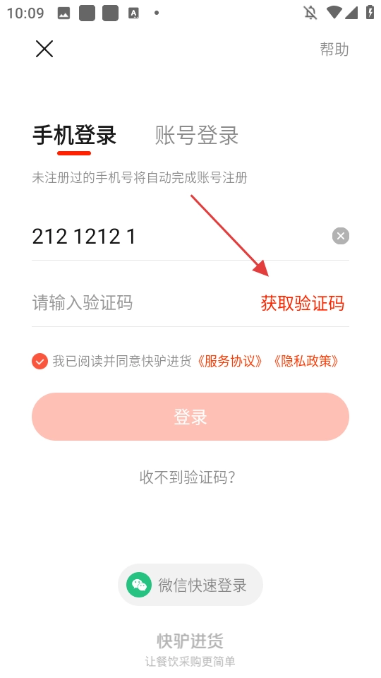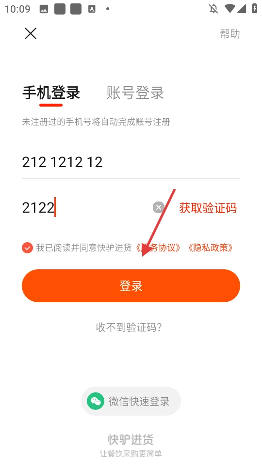 请输入收到的验证码,然后点击【登录】按钮,以此完成账号的登录流程。