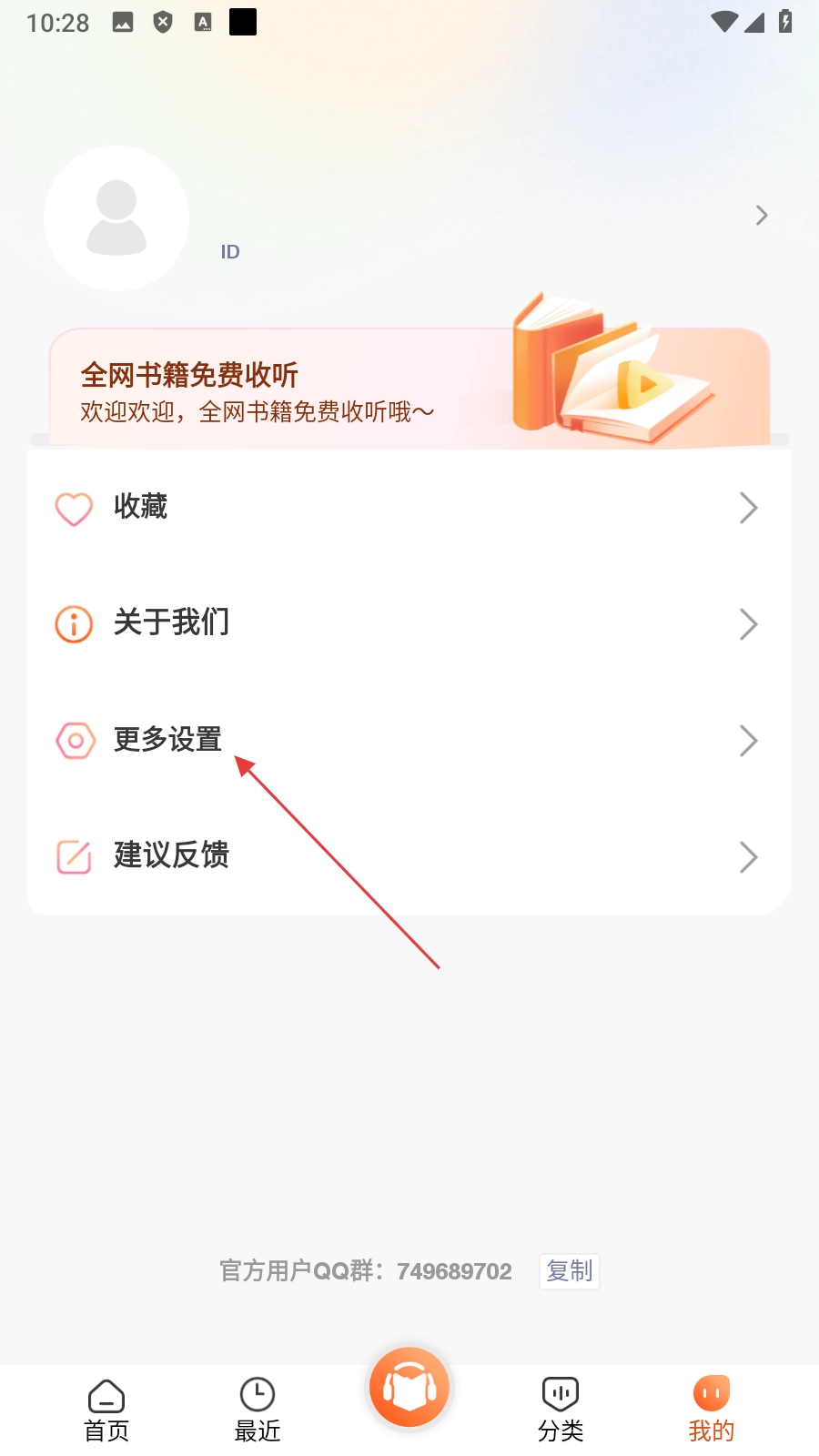 进入个人中心页面后,点击【更多设置】选项,即可进入对应的更多设置页面。