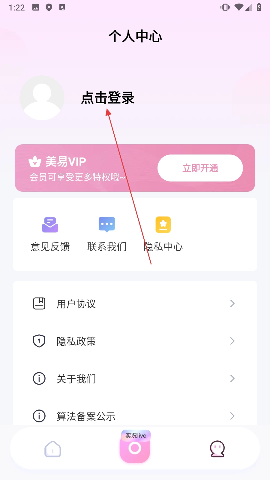 在个人中心页面,点击【点击登录】按钮,即可进入登录信息填写页面。