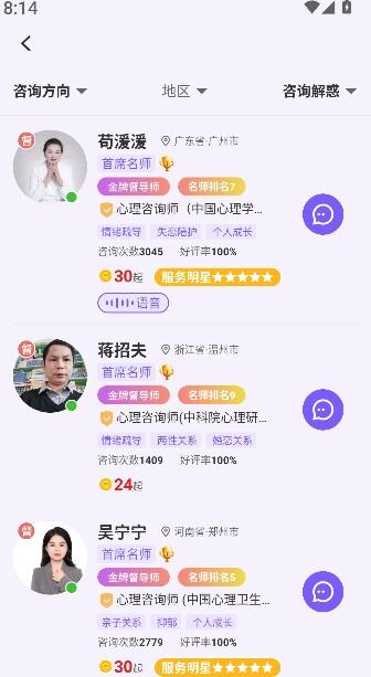 在选择页面,首先要明确咨询方向,像睡眠障碍、亲子教育或者情绪压力这类,这样能筛选出合适的导师。