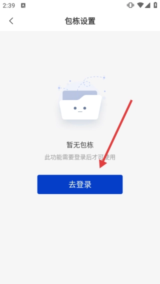 在包栋设置页面,点击【去登录】按钮,登录成功后即可使用包栋功能。