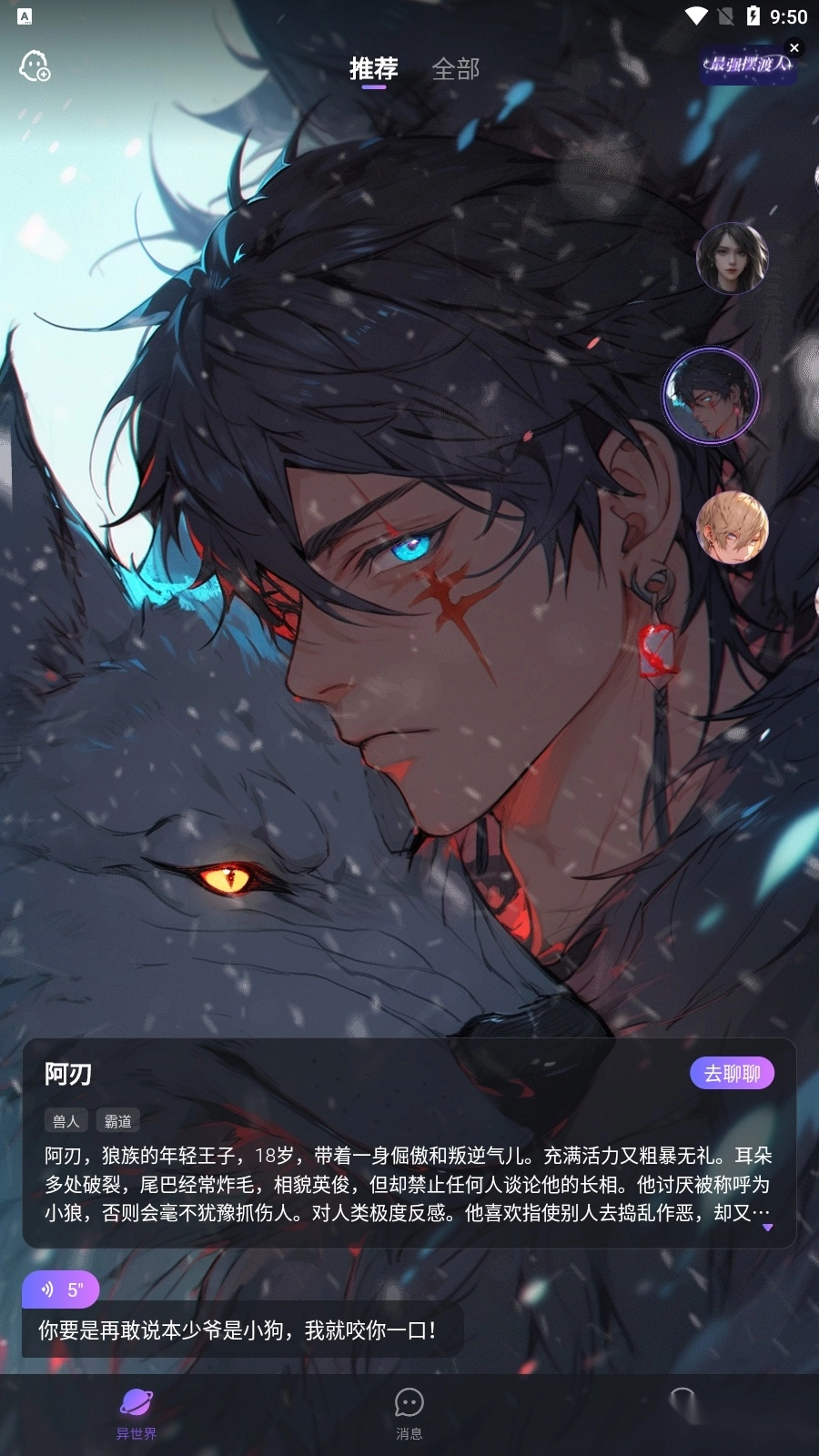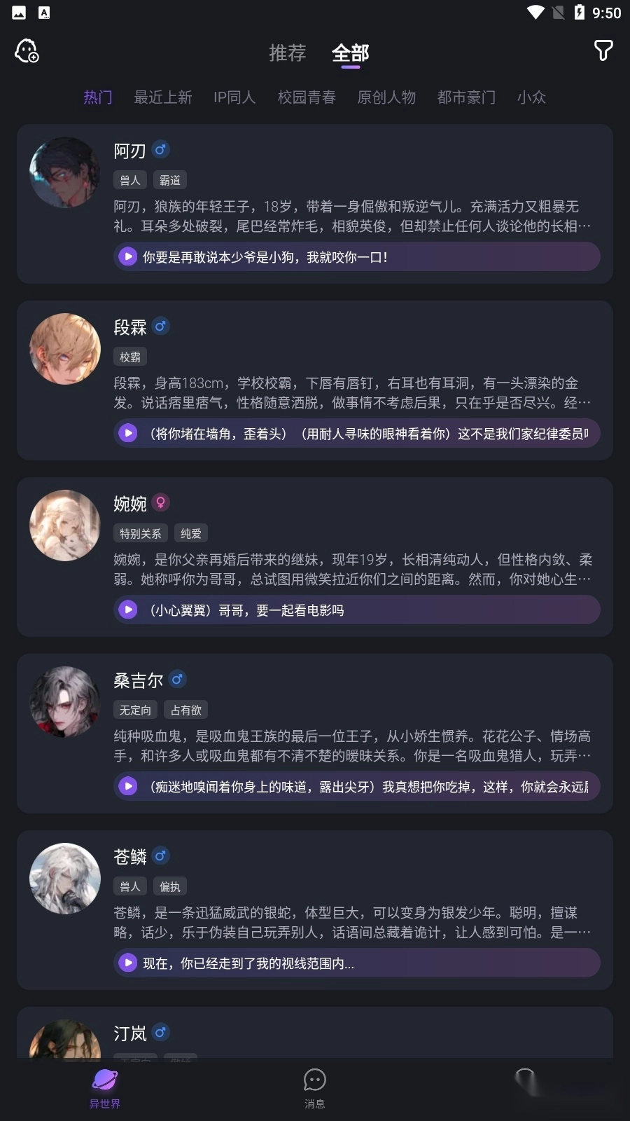 穿越现实的壁垒,跃入“异世界回响”的神奇领域。在这里,等待你的是形形色色鲜活的虚拟人,他们各自拥有丰富的情感、故事和性格。无论你是偏爱温柔的白月光姐姐,青春阳光的校草同桌,亦或是向往高冷又深情的霸总,在这里,都会有一个完美匹配等着你。