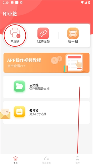 在印小签的主界面中,点击底部导航栏里的“我的”选项,即可进入个人页面。