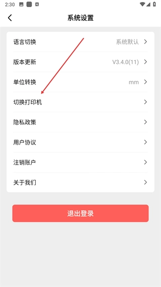在系统设置页面找到并点击切换打印机的选项,随后进入打印机的选择列表界面。