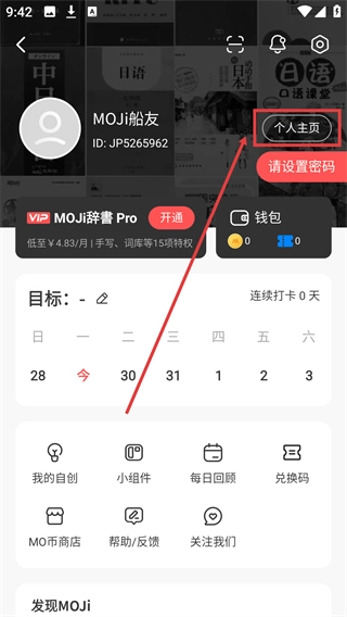 进入个人相关页面后,点击【个人主页】按钮。