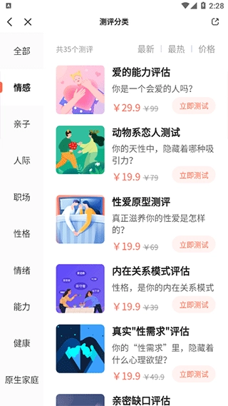 选择自己需要测评的类型。