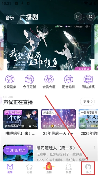在广播剧页面的底部,你可以找到【自己】这个入口,点击它就能进入个人中心页面了。