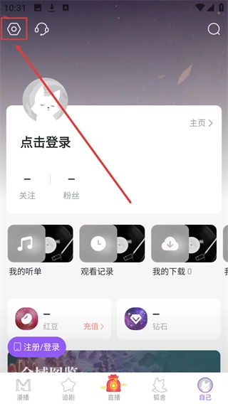 进入个人中心后,点击页面左上角的【设置】图标,即可进入设置页面。