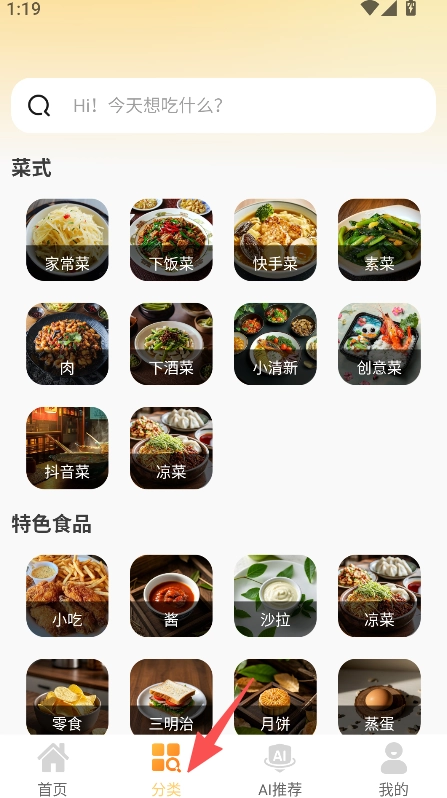 划分菜式、特色食品、功效、人群等多个板块,精准匹配不同饮食需求的查找方向。