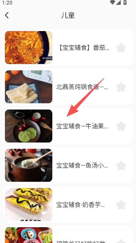进入儿童分类页面,查看对应的菜谱列表内容。
