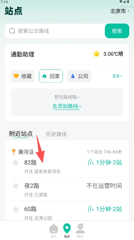 从站点线路列表里挑选特定的公交线路,例如“82路”。