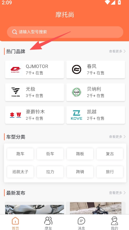 平台设有热门品牌和车型分类板块,用户可选择对应品牌,从而获取相关摩托信息,该平台还提供了信息的分类获取渠道。