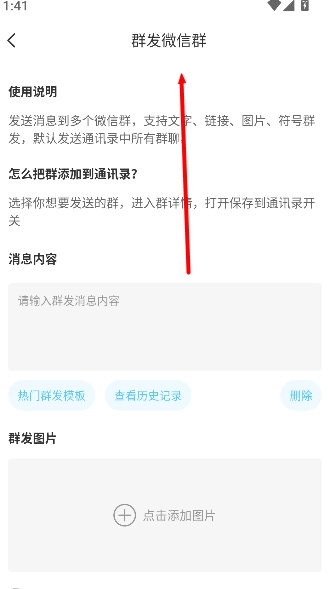 打开微粉清理,进入群发功能页面。