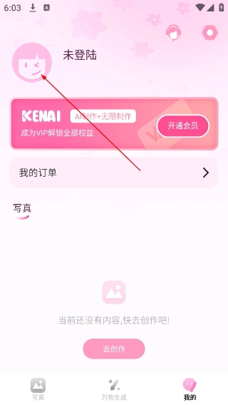 在个人中心页面,点击“未登录”区域,即可进入登录选择界面。