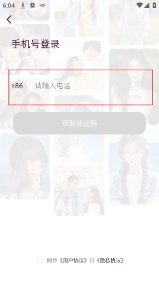 在手机号登录界面,输入需绑定的手机号码,点击【获取验证码】按钮,输入接收到的验证码即可完成登录操作。