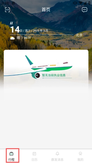 进入软件首页后,底部设有【行程】等功能选项,点击【行程】即可查看相关的执业信息。
