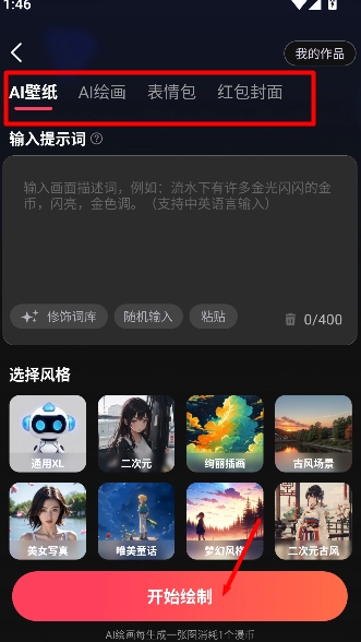 打开《麦鸭推文》,进入绘词页面,点击开始创作。