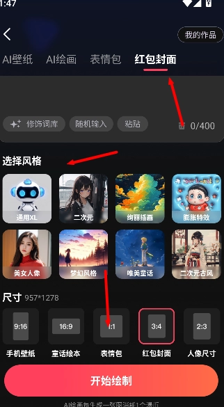 在样式选项中,可选择红包封面风格完成设置。