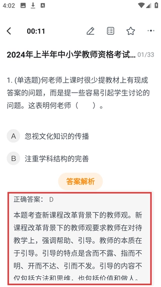 点击【答案解析】按钮后,系统会呈现该题的正确答案以及详尽的解析内容,助力用户理解题目所对应的知识点。