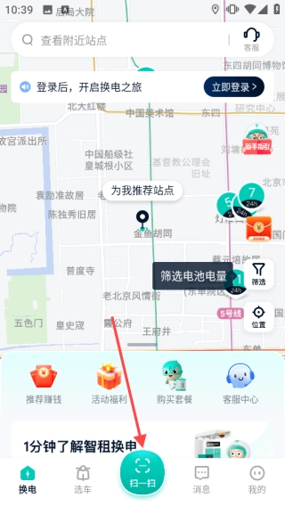 在地换电界面,点击【扫一扫】,即可扫码用车。