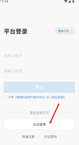 如果是企业账号,点击企业登录入口进入页面。