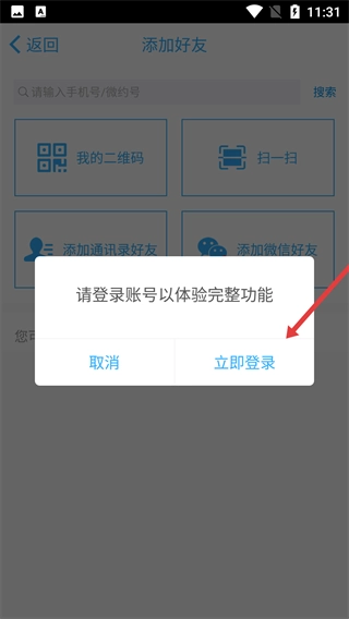当弹出提示框时,点击【立即登录】选项,就能解锁添加好友的功能。