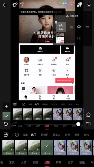 最后点击右上方进行图层合并即可添加滤镜完成。
