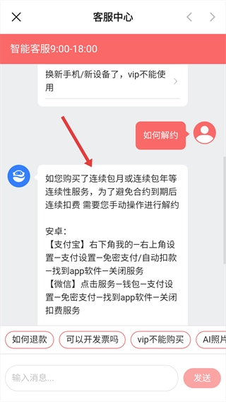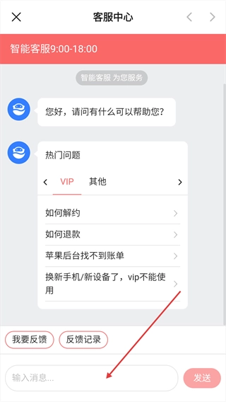 进入【客服中心】后,通过发送问题进行咨询。