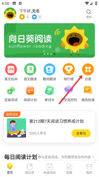 你可以先打开向日葵阅读App,然后在首页找到【分类】选项并点击,这样就能进入分类页面啦。