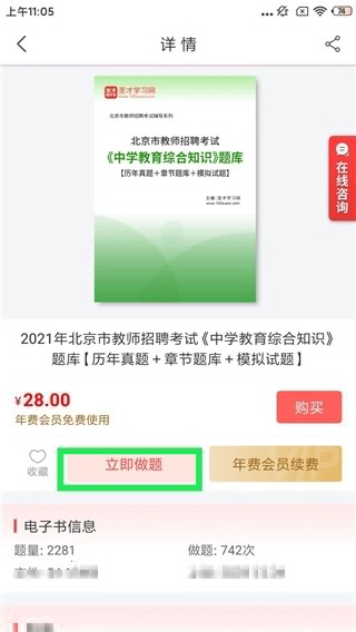 在课程详情界面点击“立即做题”开始做题;