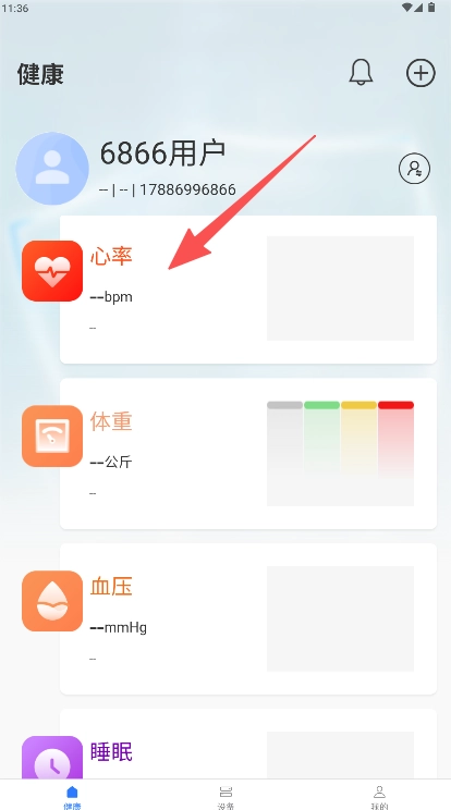 在软件首页找到“心率”模块卡片,点击该卡片进入心率监测页面。