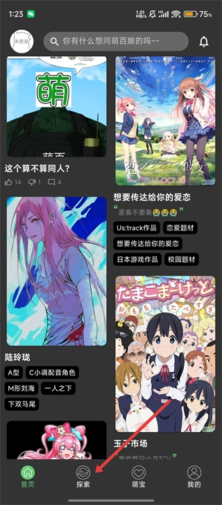 打开萌娘百科后,点击页面底部的【探索】按钮,就能进入探索页面啦。