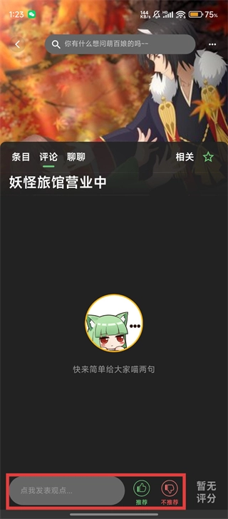 在条目页面切换至【评论】栏,即可点击输入框发表个人观点,也能通过点击【推荐】或【不推荐】按钮完成评分操作。