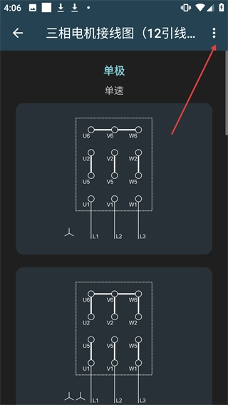 在接线图详情页面,点击右上角的三点菜单按钮,即可展开相关的操作选项。