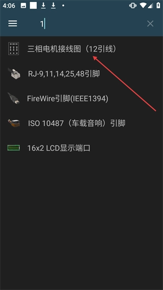 在搜索页面输入内容后,选择【三相电机接线图(12引线)】这一选项,即可进入对应的接线图详情页面。